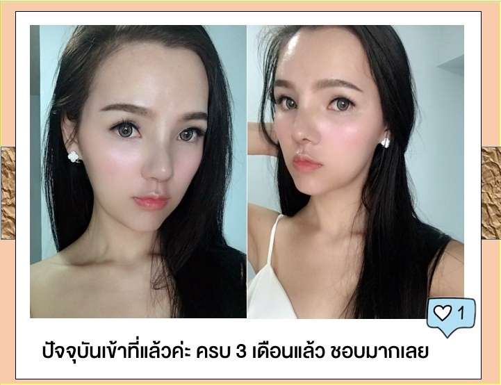 ตอนนี้เราแก้จมูกมาครบ 3 เดือนแล้ว ได้ทรงที่อยากได้ดั่งใจฝัน ตอนนี้ชอบหน้าตัวเอมาก มีมิติ ถ่ายรูปมุมไหนก็สวย ซ้าย ขวา หน้า หลัง มุมเสย มุมเงย ได้หมดเอาอยู่ แต่งหน้าก็ไม่ต้องแต่งเยอะ ไม่ต้องลงหน้าหนักๆเลย แล้วก็ชอบตรงปลายจมูกมาก ไม่บาง ไม่ใส ปลายเชิด สวยงาม เทียบรูปก่อนหลังให้ดูกันเลย
