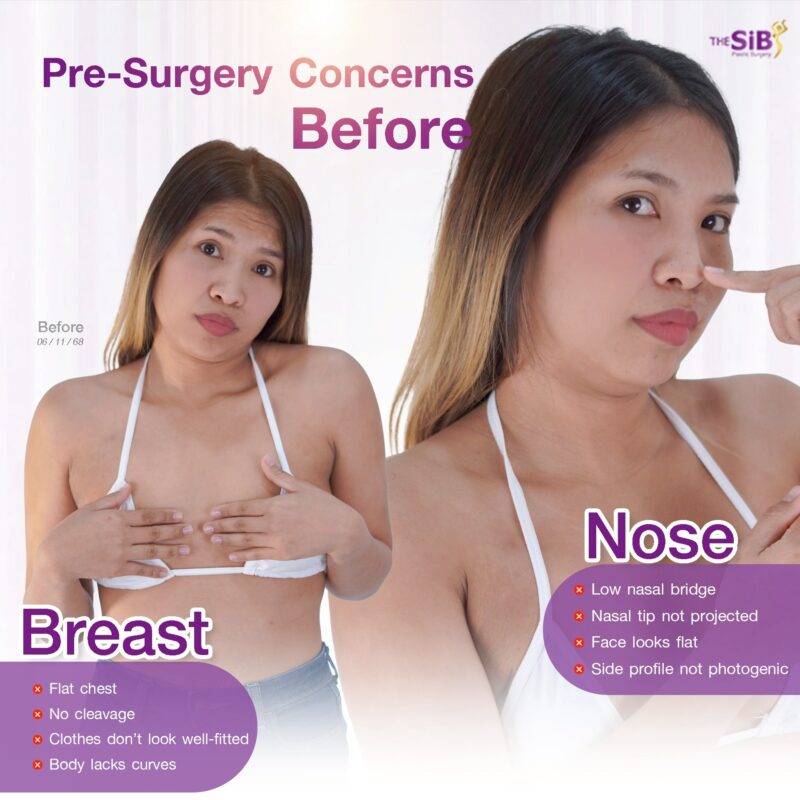 For many women, confidence is not determined by just one feature but by the overall balance of the face and body. In this case, the patient came in for consultation because she felt that both her nose and breast shape did not fully complement her natural proportions. These concerns had gradually affected how confident she felt about her appearance.
