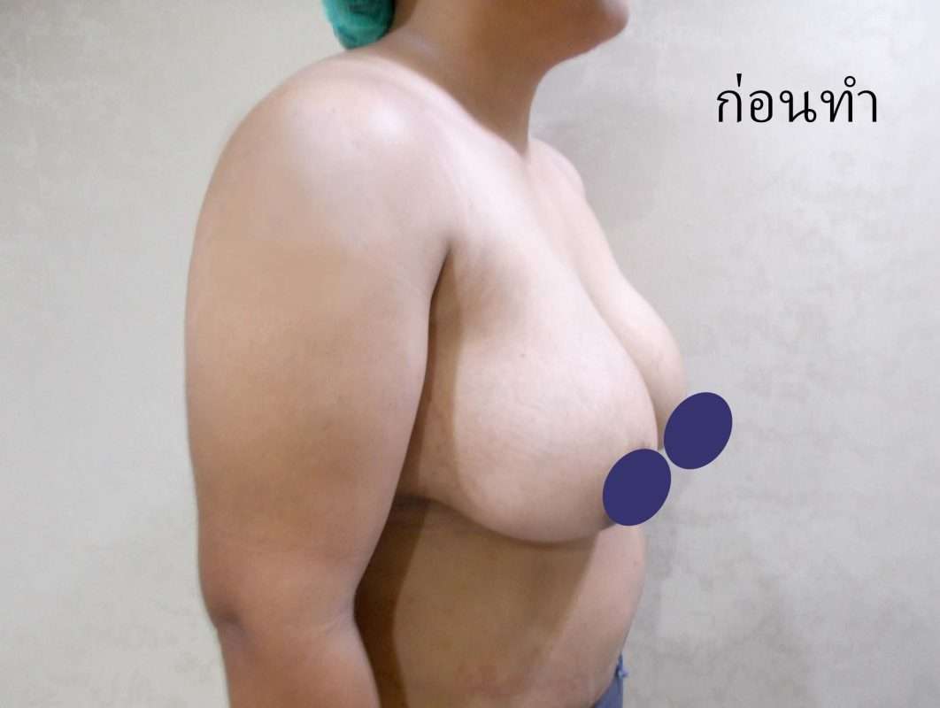 ก่อนแก้ มองด้านข้างคือนมคล้อยจริง ๆ หัวนมทิ่มลงมาก