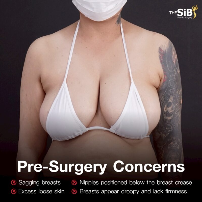 For this patient, the main concern that brought her to consult with the surgeon was not the size of her breasts, but the significant sagging of the breast tissue.